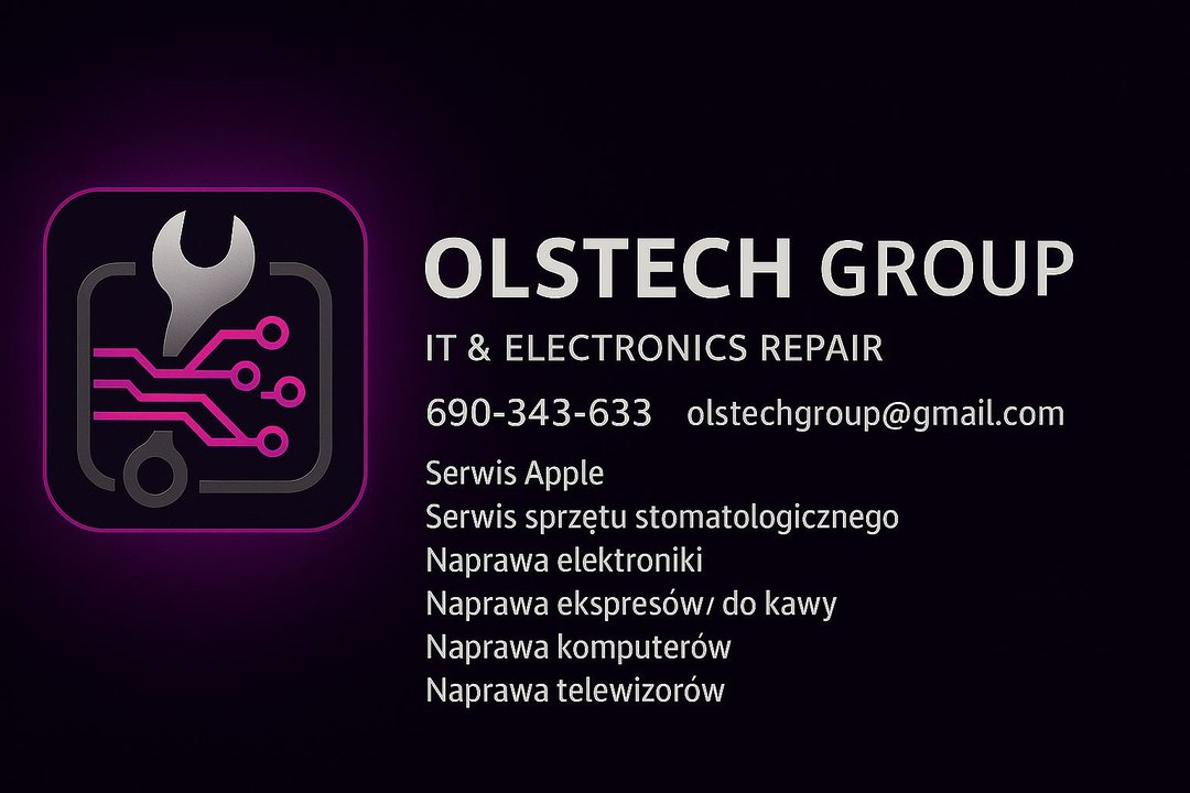 OlsTech Group – profesjonalny serwis elektroniki w Toruniu (Rubinkowo). Zajmujemy się naprawą komputerów i laptopów, urządzeń Apple (iPhone, MacBook, iPad), a także sprzętu RTV: telewizorów, sprzętu audio oraz ekspresów do kawy. Prowadzimy dokładną diagnostykę i stosujemy sprawdzone części zamienne, dzięki czemu oferujemy skuteczne i trwałe naprawy. Od 2014 roku pomagamy klientom w szybkim przywracaniu sprzętu do pełnej sprawności. Możesz się z nami skontaktować pod adresem: [email protected]